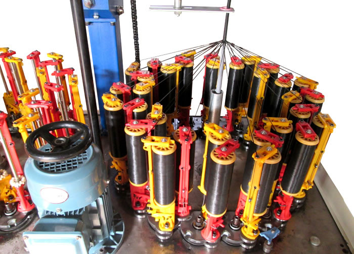 我公司生產(chǎn)的90系列編織機(jī)被廣泛的用于編織各種圓或者扁的繩帶(鞋帶、手提帶、拖車?yán)K、行李繩、釣魚線、裝飾繩、高空強(qiáng)力繩、松緊帶等)和電線電纜(高溫導(dǎo)線、屏蔽線、布花線等),高壓膠管(氧氣、乙炔管、高壓油管、噴霧管等),復(fù)合材料骨架編織(碳纖維、玻璃纖維),小型盤根,汽車線束。