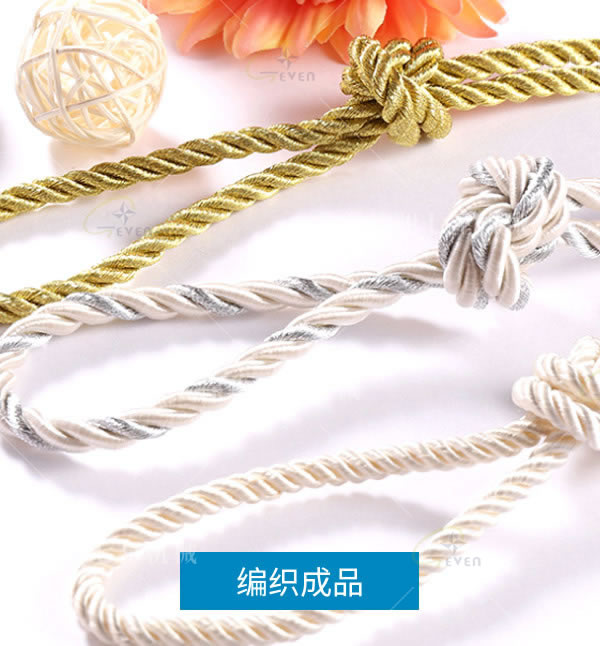 三股扭繩機(jī)分包芯和不包芯的兩種,產(chǎn)量高,操作簡(jiǎn)單,產(chǎn)品廣泛用于卡口帶、裝飾用品等。