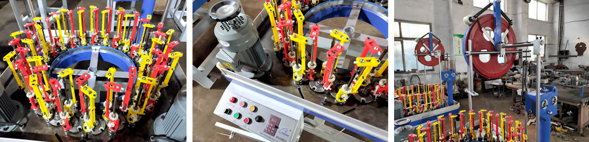 我公司生產(chǎn)的90系列編織機(jī)被廣泛的用于編織各種圓或者扁的繩帶(鞋帶、手提帶、拖車?yán)K、行李繩、釣魚線、裝飾繩、高空強(qiáng)力繩、松緊帶等)和電線電纜(高溫導(dǎo)線、屏蔽線、布花線等),高壓膠管(氧氣、乙炔管、高壓油管、噴霧管等),復(fù)合材料骨架編織(碳纖維、玻璃纖維),小型盤根,汽車線束。