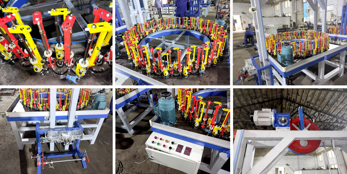 The high speed braiding machine we produce are commonly used to braid many kinds of both round and flat ropes/cords/laces (shoelaces, handbag laces, tow ropes, luggage ropes, fishing line, fiberglass sleeves, high pressure rubber hoses, decoration ropes, aerial ropes, elastic ropes, etc) and cables (high temperature wire, shielded cable, stainless steel wire braided flex hose, etc.)