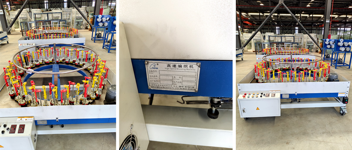 編織成品:防火套管 材料名稱:玻璃纖維 ?! Ъ痈甙踩雷o扁鐵,帶中心支撐桿?! 【幙棛C地面到編織機上盤面高度450mm,帶萬向輪。 含撐線盤,...